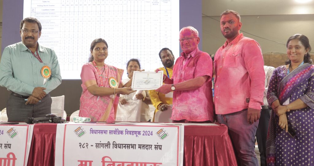 सांगली :- सांगली विधानसभा मतदारसंघात सलग तिसऱ्यांदा विजय मिळवत भाजप महायुतीचे उमेदवार सुधीर गाडगीळ यांनी हॅट्रिक केली आहे. अत्यंत चुरशीची ही लढत आमदार सुधीर गाडगीळ यांनी जिंकली. त्यांनी नजीकचे प्रतिस्पर्धी काँग्रेसचे शहर जिल्हाध्यक्ष पृथ्वीराज पाटील यांचा ३६ हजार १३५ मतांनी पराभव केला. आमदार गाडगीळ यांना १,१२,४९८, पृथ्वीराज पाटील यांना ७६, ३६३, तर जयश्री पाटील यांना ३२,७३६ मते मिळाली. सांगली विधानसभा मतदारसंघाची मतमोजणी तरुण भारत स्टेडियम येथे सकाळी आठ वाजता सुरू झाली. पहिल्या फेरी पासूनच सुधीर गाडगीळ यांनी आघाडी घेतली. आघाडी वाढत होती तसा कार्यकर्त्यांचा जल्लोषही वाढत गेला. आमदार गाडगीळ यांच्या जनसंपर्क कार्यालयात उपस्थित कार्यकर्त्यांनी जल्लोष केला. त्यानंतर फटाक्यांच्या आतषबाजीत आणि गुलालाच्या उधळणीत विजय मिरवणूक काढण्यात आली. विश्रामबाग चौकातून पुष्पराज चौकात मिरवणूक आली. तेथे व्यासपीठ उभारण्यात आले होते. येथे आमदार गाडगीळ यांचे कार्यकर्त्यांनी स्वागत केले. तेथून राम मंदिर चौकात मिरवणूक आली. श्रीराम प्रतिष्ठानच्या वतीने राम मंदिर चौकात कार्यकर्त्यांनी जेसीबीने गुलाल आणि फुलांची उधळण करत जल्लोष केला. नागरिकांना लाडू वाटप करण्यात आले. काँग्रेस कमिटीमार्गे गणपती मंदिरात दर्शनासाठी ही मिरवणूक गेली. विजय झाल्यानंतर आमदार गाडगीळ यांनी निवडणूक निर्णय अधिकारी यांच्या हस्ते विजयाचे प्रमाणपत्र स्वीकारले. या मिरवणुकीत प्रदेश उपाध्यक्ष शेखर इनामदार, शहर जिल्हाध्यक्ष प्रकाश ढंग, माजी आमदार दिनकर पाटील, नितीन शिंदे, पृथ्वीराज पवार, गणेश गाडगीळ, गौतम पवार, धीरज सूर्यवंशी, सिद्धार्थ गाडगीळ, राष्ट्रवादी काँग्रेस अजित पवार गटाचे विष्णू माने, पद्माकर जगदाळे, शिवसेनेचे महेंद्र चंडाळे, नानासाहेब शिंदे तसेच महायुती मधील नेते व पदाधिकारी उपस्थित होते.