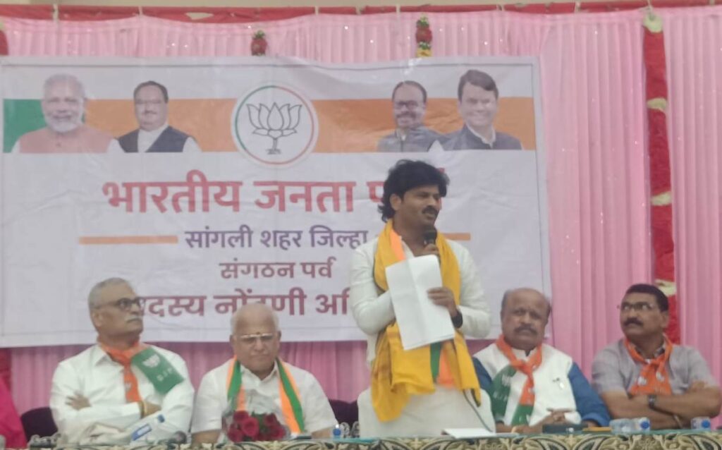 सांगली :- भारतीय जनता पक्षाच्या वतीने संपूर्ण देशभर सदस्यता नोंदणीचा कार्यक्रम सध्या चालू आहे. त्या अनुषंगाने सांगली येथे भारतीय जनता पार्टी, सांगली शहर जिल्ह्याच्या वतीने विश्रामबाग येथील खरे मंगल कार्यालयात सदस्यता नोंदणी अभियाना साठी सर्व प्रमुख कार्यकर्ते व पदाधिकाऱ्यांची बैठक संपन्न झाली. या बैठकीला आमदार गोपीचंद पडळकर यांनी मार्गदर्शन केले. सर्व पदाधिकाऱ्यांनी व कार्यकर्त्यांनी येत्या 12 जानेवारी पर्यंत मोठ्या प्रमाणावर सदस्य नोंदणी करण्याचे आवाहन यावेळी त्यांनी केले. सर्व पदाधिकाऱ्यांनी सक्रिय सदस्य होऊन सदस्य नोंदणी करण्याबद्दल त्यांनी मार्गदर्शन केले. सांगली शहर जिल्ह्यातून दोन लाख सदस्य करण्याचे उद्दिष्ट यावेळी ठरवण्यात आले. अभियानाच्या कार्यक्रमाचे स्वागत व प्रास्ताविक जिल्हाध्यक्ष प्रकाश ढंग यांनी केले. सोशल मीडिया संयोजक संकेत कुलकर्णी यांनी सदस्यता नोंदणी संदर्भात, मोबाईल वरून कशा पद्धतीने सदस्य नोंदणी करायची आहे त्याबद्दल माहिती दिली. यावेळी आमदार सुरेश भाऊ खाडे आणि आमदार सुधीर दादा गाडगीळ यांनी सुद्धा कार्यकर्त्यांना मार्गदर्शन केले. येणाऱ्या महापालिकेच्या व जिल्हा परिषदेच्या निवडणुकीच्या दृष्टीने हे सदस्यता अभियान अत्यंत महत्त्वाचे आहे असे त्यांनी सांगितले. यावेळी ग्रामीण जिल्हाध्यक्ष दीपक बाबा शिंदे यांनी संपूर्ण जिल्ह्यामध्ये सदस्यता अभियान पूर्ण ताकतीने राबवण्याबद्दल विश्वास व्यक्त केला. या बैठकी मध्ये नवनिर्वाचित आमदार सुरेश भाऊ खाडे, सुधीर दादा गाडगीळ, व गोपीचंद पडळकर यांचा कार्यकर्त्यांच्या वतीने सत्कार करण्यात आला. सलग 20 वर्ष भारतीय जनता पक्ष सांगली जिल्ह्याचे प्रसिद्धी प्रमुख म्हणून काम केल्याबद्दल केदार खाडिलकर यांचा सत्कार आमदार गोपीचंद पडळकर यांच्या हस्ते करण्यात आला. यावेळी स्वाती शिंदे, संगीता खोत, श्रीकांत शिंदे, शिवाजी डोंगरे, काकासाहेब धामणे, सुबराव मद्रासी, अविनाश मोहिते, प्रदीप कांबळे, डॉ. भालचंद्र साठे, सोनाली सागरे, राजू कुंभार, सविता मदने, उर्मिला बेलवलकर, माधुरी वसगडेकर, संजय यमगर यांच्यासह सर्व प्रमुख पदाधिकारी मंडल अध्यक्ष, सर्व आघाड्यांचे अध्यक्ष व कार्यकर्ते मोठ्या संख्येने उपस्थित होते.