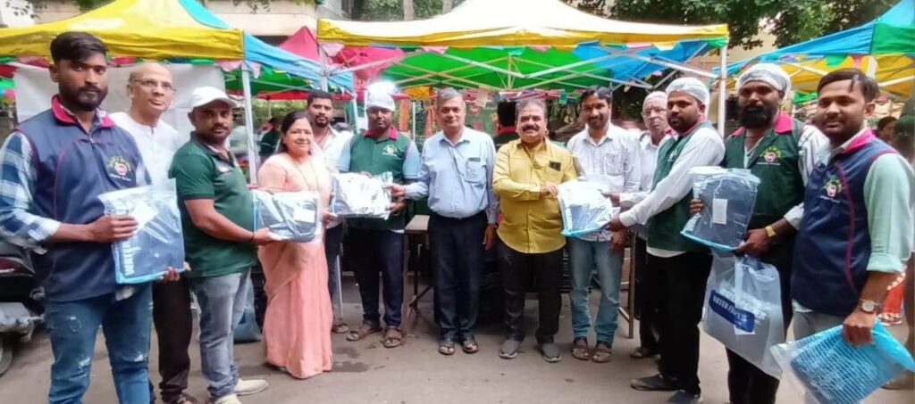 पुणे :- “शेतकरी हा समाजाचा आत्मा असून जीवन साखळीतील महत्वाचा घटक आहे असे मत क्रिएटिव्ह फाउंडेशन चे अध्यक्ष संदीप खर्डेकर यांनी व्यक्त केले. शेतकऱ्यांनी जर पीक काढणे बंद केले तर काय अवस्था होईल याची आपण कल्पना देखील करू शकत नाही कारण मांसाहार करणाऱ्यांना देखील गहू, तांदूळ, कांदा, मिर्ची, लिंबू,मसाला लागतोच ना असेही संदीप खर्डेकर म्हणाले. म्हणूनच ह्या गुरुपौर्णिमेच्या निमित्ताने विंग्रो शेतकरी आठवडी बाजारातील 40 शेतकरी बांधवांना रेनकोट भेट देऊन त्यांचा सन्मान करण्यात आला असल्याचे ही खर्डेकर म्हणाले. यावेळी मुकुलमाधव फाउंडेशन चे सचिन कुलकर्णी,आठवडे बाजाराच्या प्रवर्तक व मा.नगरसेविका मंजुश्री खर्डेकर,किरण देखणे,सुमित दिकोंडा,जगदीश डिंगरे,विंग्रो मार्केट चे सुजाता संदीप घगे, विकास पवार,संदीप भोसले,गणेश भाले, आतिश टेमकर,ओमकार फरगडे, शाम वाघमारे इ मान्यवर उपस्थित होते.शेतकऱ्यांविना आपण जगण्याची कल्पना करू शकत नाही म्हणून आज त्यांना वंदन करून आम्ही कृतज्ञता व्यक्त करत आहोत असे मुकुलमाधव फाउंडेशन चे सचिन कुलकर्णी म्हणाले.आम्ही समाजात वेगळं कार्य करणाऱ्या व आपला ठसा उमटविणाऱ्यांच्या पाठीशी कायम उभं राहतो आणि त्यालाच अनुसरून गरजुंना मदत करून कर्तव्यपूर्तीचे समाधान लाभते असेही ते म्हणाले. मला मिळालेले यश हे उपक्रमातील सातत्यामुळे असून आठ वर्षांपूर्वी नगरसेविका म्हणून निवडून आल्यावर जे उपक्रम सुरु केले ते आजही तसेच सुरु आहेत आणि नागरिकांच्या पसंतीस उतरले आहेत असेही सौ. खर्डेकर म्हणाल्या. शेतकरी आठवडे बाजाराच्या माध्यमातून शेतातून थेट सर्व प्रकारच्या ताज्या भाज्या, पालेभाज्या, फळं इ रास्त दरात उपलब्ध होतं म्हणून प्रभागातील नागरिक बाजाराची वाट बघतात असेही मंजुश्री खर्डेकर म्हणाल्या. वटपौर्णिमे निमत्त बाजारातील महिलांना साडया भेट दिल्या आता रेनकोट भेट देऊन शेतकऱ्यांना सन्मानित करत आहोत याचा आनंद वाटतो असेही त्या म्हणाल्या.यापुढे देखील शेतकऱ्यांची आरोग्य तपासणी व इतर उपक्रम राबविण्यात येतील असे क्रिएटिव्ह फाउंडेशन चे अध्यक्ष संदीप खर्डेकर व मुकुलमाधव फाउंडेशन चे सचिन कुलकर्णी यांनी स्पष्ट केले.