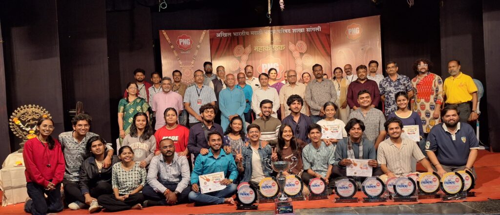 सांगली – सातव्या पीएनजी महाकरंडक राज्यस्तरीय आंतरमहाविद्यालयीन एकांकिका स्पर्धेचा पारितोषिक वितरण समारंभ संपन्न झाला.मे. पुरुषोत्तम नारायण गाडगीळ सराफ व जव्हेरीचे संचालक सिध्दार्थ गाडगीळ यांच्या हस्ते विजेत्या संघाना पारितोषिके देण्यात आली.अखिल भारतीय मराठी नाट्य परिषदेच्या सांगली शाखेच्या वतीने या स्पर्धेचे आयोजन करण्यात आले होते. स्पर्धेचा सविस्तर निकाल याप्रमाणे प्रथम क्रमांक – चरचरणाऱ्या फॅन्टसीचे युद्ध – संगीत व नाट्यशास्त्र अधिविभाग,शिवाजी विद्यापीठ ,कोल्हापूर . द्वितीय क्रमांक- मॉडर्न महाविद्यालय ,पुणे- वामन आख्यान. तृतीय क्रमांक -प्रेम की यातना ,संगमेश्वर महाविद्यालय ,सोलापूर ;उत्तेजनार्थ पहिला- मराठवाडा मित्र मंडळाचे शंकरराव चव्हाण विधी महाविद्यालय, पुणे.बोहाडा. देशभक्त रत्नाप्पाण्णा कुंभार कॉलेज ऑफ कॉमर्स कोल्हापूर -ग्वाही. दिग्दर्शन प्रथम क्रमांक -कादंबरी माळी ,चरचरणाऱ्या फॅंटसीचे युद्ध. द्वितीय क्रमांक- अनिकेत खरात- विराज दिघे , वामन आख्यान तृतीय क्रमांक – दीपक शिंदे – प्रेम की यातना. स्त्रीअभिनय – प्रथम क्रमांक, कादंबरी माळी – चरचरणाऱ्या फॅंटसीचे युद्ध, द्वितीय क्रमांक- केतकी भाळवणकर ,वामन आख्यान; तृतीय क्रमांक -अक्षता बारटक्के- ग्वाही; उत्तेजनार्थ- पूर्वा जोतावर- दर्शन; संयोगिता चौधरी- सोयरीक ,वैष्णवी कुंभार- हाफ वे, स्वरा जोग- अव्यक्त, मृणाल पाटील- मिठाई. पुरुष अभिनय – प्रथम क्रमांक -जैद शेख- एकांकिका- प्रेम की यातना द्वितीय क्रमांक- प्रांज्वल पडळकर-वामन आख्यान तृतीय क्रमांक -मुकुल ढेकळे- बोहाडा उत्तेजनार्थ -अभिनव तोरणे- चरचरणाऱ्या फॅंटन्सीचे युद्ध, अभिषेक हिरेमठ- स्वामी- ग्वाही ,भूषण चांदणे- अ युसलेस जीनियस, राजस बर्वे- अव्यक्त, पार्थ पाटणे- ग्वाही. नेपथ्य – प्रथम क्रमांक – चिन्मय मोरे , आशुतोष देशमाने- एकांकिका – एका हाताची गोष्ट ,डी वाय पाटील अभियांत्रिकी आणि तंत्रज्ञान महाविद्यालय, कोल्हापूर. द्वितीय क्रमांक- साहिल जाधव, एकांकिका -ग्वाही, देशभक्त रत्नाप्पा कुंभार कॉलेज ऑफ कॉमर्स ,कोल्हापूर. तृतीय क्रमांक -श्रावणी कुलकर्णी, आर्या काटे- एकांकिका- अव्यक्त- चिंतामणराव व्यापार महाविद्यालय सांगली. प्रकाश योजना- प्रथम क्रमांक -राज दीक्षित- एकांकिका- इन बिटवीन ऑफ-बृहन महाराष्ट्र वाणिज्य महाविद्यालय पुणे द्वितीय क्रमांक -प्रतीक यादव एकांकिका -एक डॉट-भारती विद्यापीठाचे अभियांत्रिकी महाविद्यालय ,कोल्हापूर. तृतीय क्रमांक – ज्ञानेश पाटील ,एकांकिका -जीनियस , तंत्रज्ञान अधि विभाग शिवाजी विद्यापीठ ,कोल्हापूर. पार्श्वसंगीत प्रथम क्रमांक -अनुद सरदेशमुख -प्रेम की यातना. द्वितीय क्रमांक-शुभम चौगुले- चरचरणाऱ्या फॅन्टसीचे युद्ध. तृती
